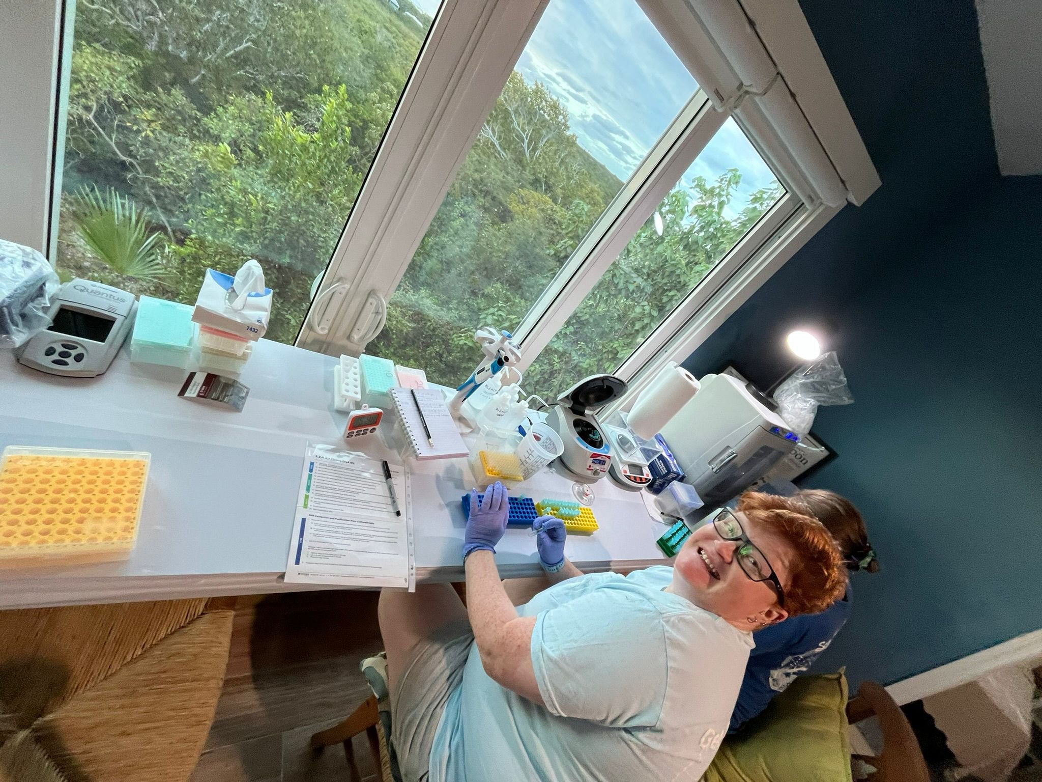 Although our custom Module-T laboratory is still waiting to be assembled, we decided to build out a fully functional DNA sequencing workspace in the upstairs of the house at our new Long Bay property.
